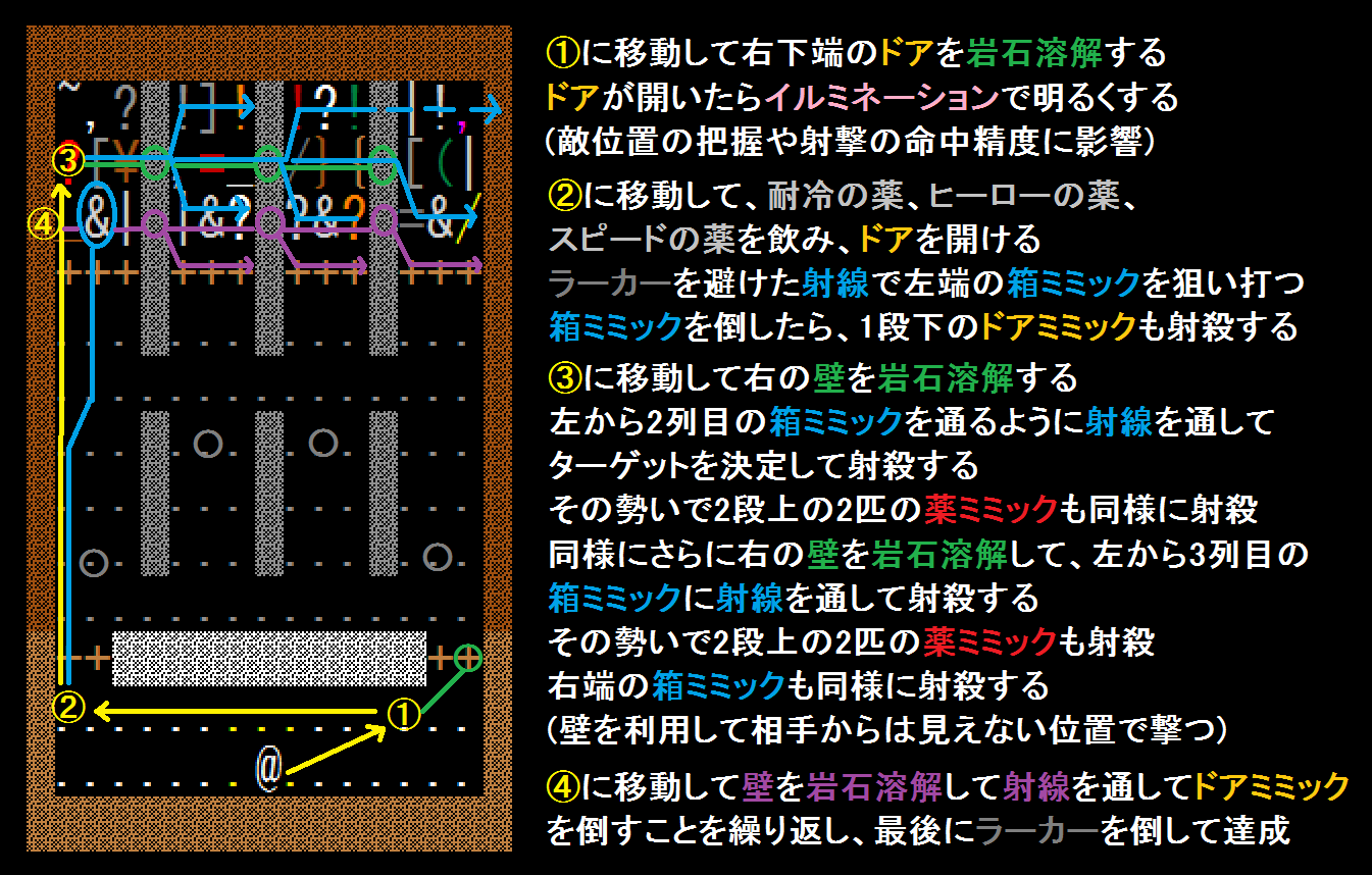 如何に素早く召喚持ちの箱ミミックを潰せるかが成功のポイントである。